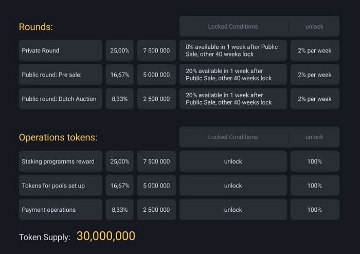 Allocation of tokens is divided into 4 stages: